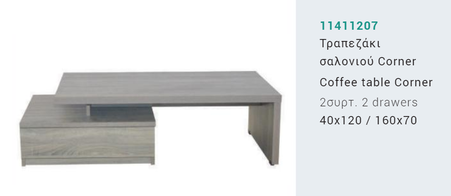 Τραπεζάκι σαλονιού Corner Coffee table 2συρτάρια 40×120 / 160×70 11411207